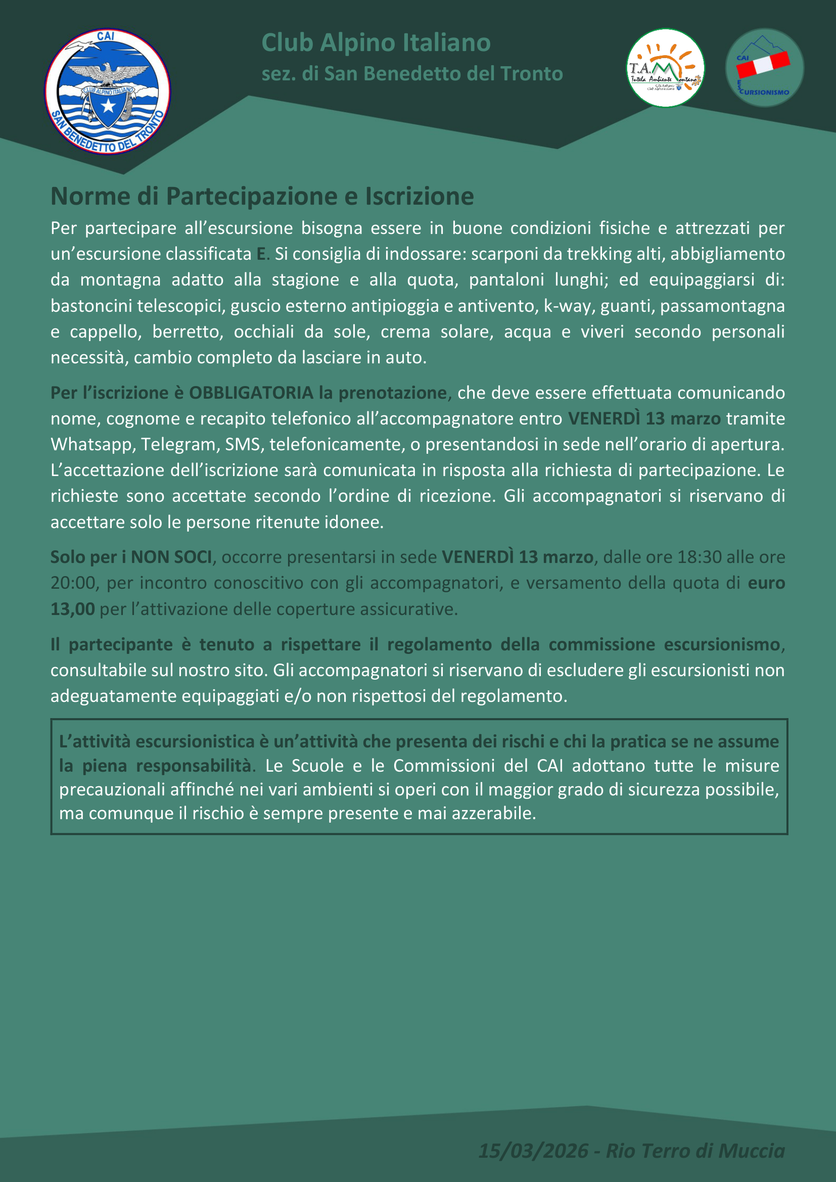 Home Attività Domenica 15 marzo 2026 – Rio Terro di Muccia – Giornata dell’acqua TAM