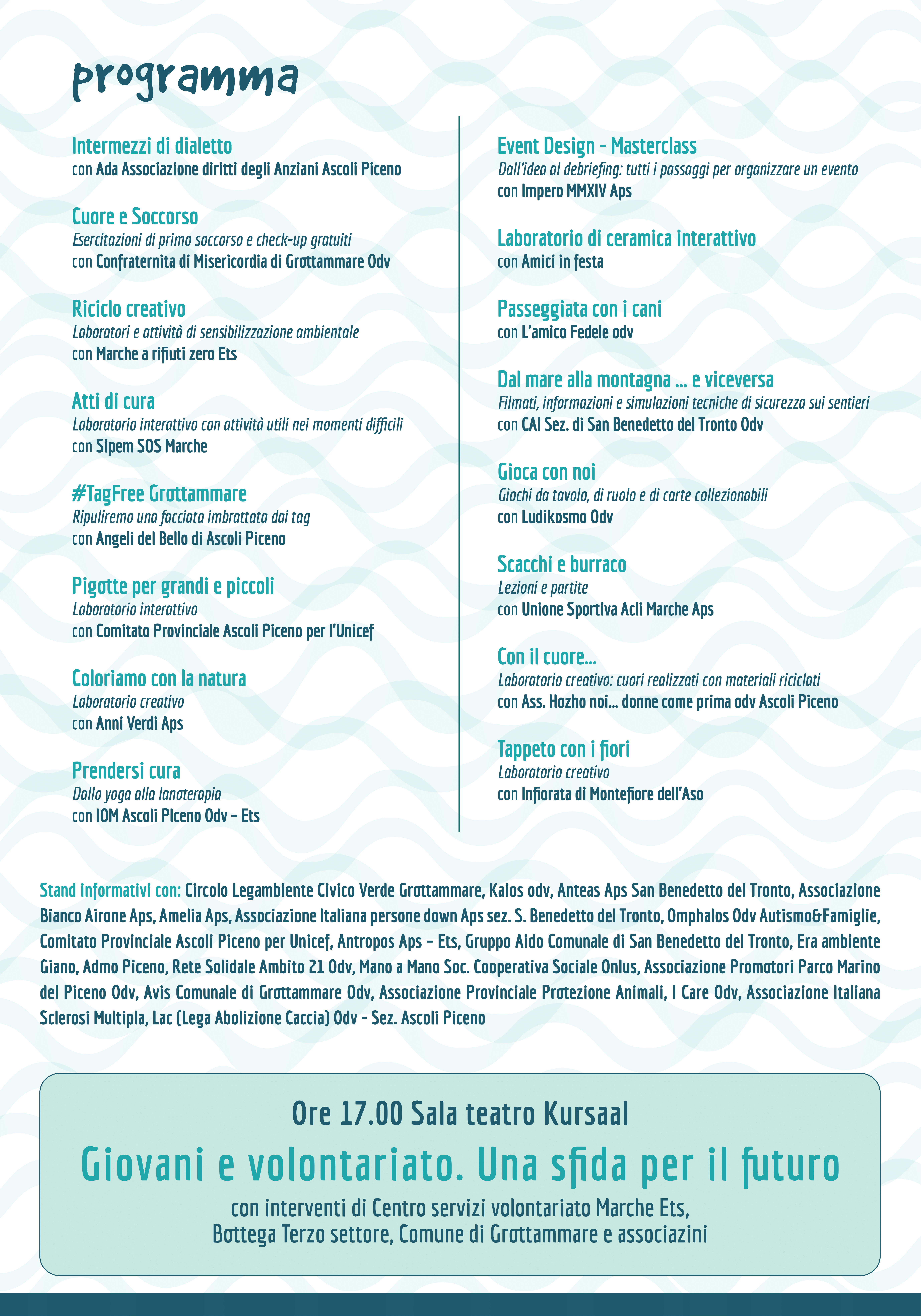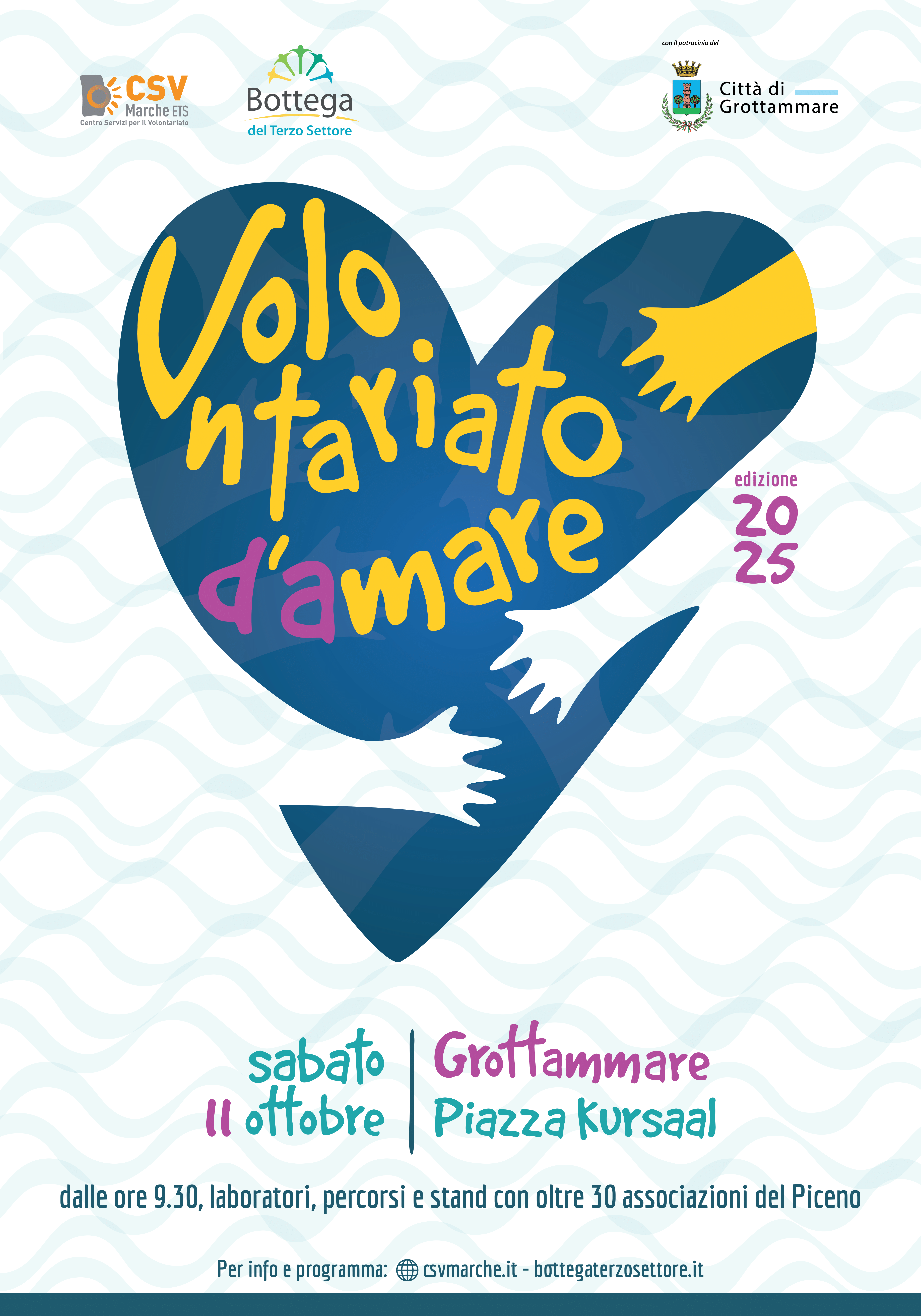 Abbiamo il piacere di informarvi che sabato 11 ottobre 2025, nel pomeriggio, presso piazza Kursaal, Grottammare, la sezione CAI di San Benedetto del Tronto sarà presente con il suo stand alla Festa del Volontariato “Volontariato d’Amare 2025“, evento organizzato dal comune di Grottammare.